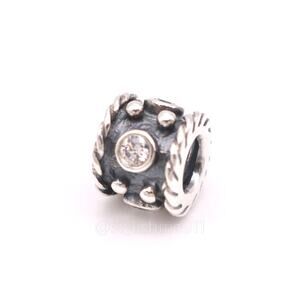 Authentic PANDORA Sterling Silver Abstract Oxidized Charm with cubic zirconia