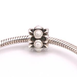 Authentic PANDORA Sterling Silver Forget Me Not White Agate Charm, 925 ALE Stamp/ Retired