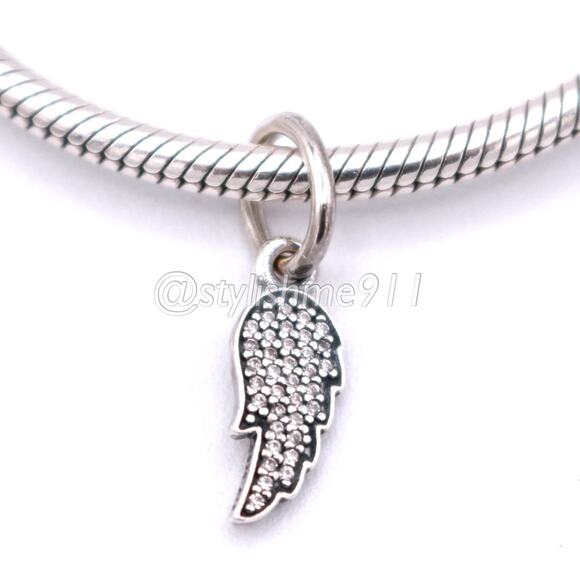 Retired Sterling Silver Symbol of Guidance Religious Angel Wing Dangle with Clear Zirconia - 791352CZ