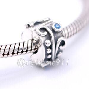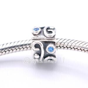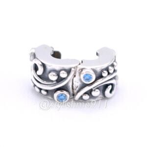Authentic PANDORA Retired Sterling Silver Tendril Clip with Blue Zirconia, S 925 ALE Stamps