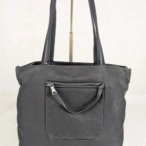 Title Authentic PRADA Black Nylon Tessuto Triangle Logo Tote Bag Made in Italy.