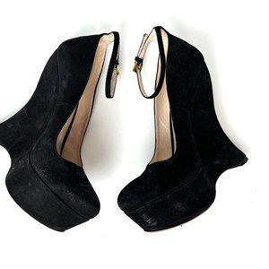 Authentic PRADA Black Suede Platform Wedge High Pumps 38.5 8