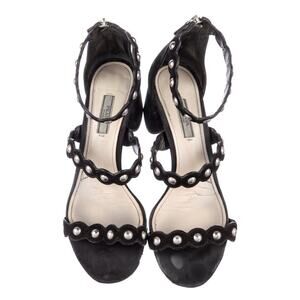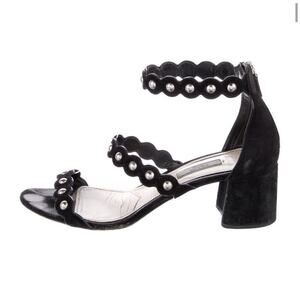 Authentic PRADA Block Heel Pewter Studded Suede Sandal Rear Zip Sandal Sz 40.5