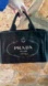 Authentic PRADA Canapa Canvas Shoulder Hand Bag Purse Black small size tote