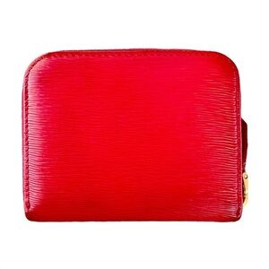 Authentic PRADA Cherry Red Saffiano Leather Card & Coin Holder with Box & Authenticity Cards