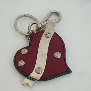 Authentic PRADA Heart Logo Three-Piece Set key ring metal [Used]