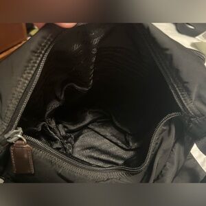 nylon black, messenger bag, Prada, branded dust bag, repaired stitching, minimalist, functional, urban, everyday accessory, sleek