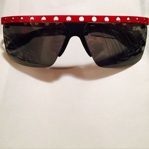 Authentic PRADA PR 50RS Red Metal Frame Sunglasses 😎 Rimless almost mirrored sunglasses with just top straight metal bar for a unique design!
