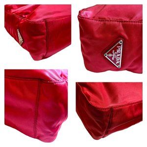 Authentic PRADA Red Nylon Tote Hand Bag Purse, Made in Italy