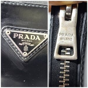 Authentic PRADA Spazzolato Mini Patent Leather Shoulder Bag Black