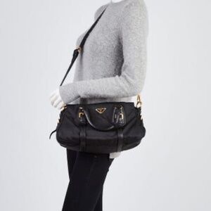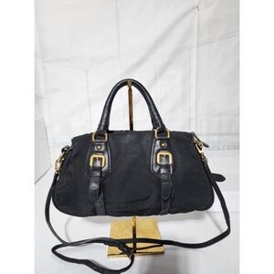 Authentic PRADA Tessuto Nylon And Leather Bauletto Bag Black