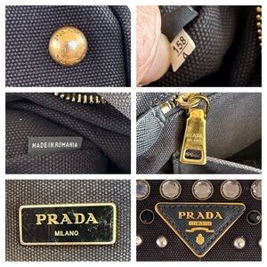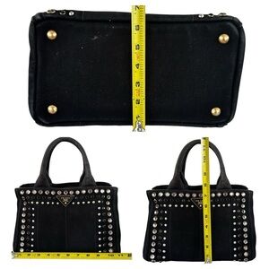 Authentic PRADA Triple Studded Black Denim Canapa Mini Tote Bag