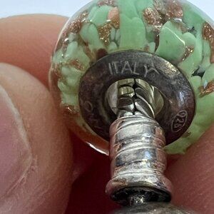 Authentic Pandora Ale Sterling Silver Snake Bracelet w/ Italy Murano Glass Charm