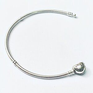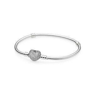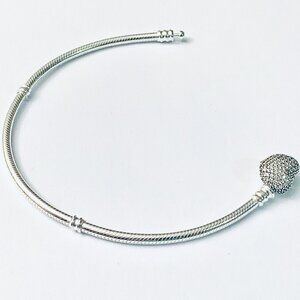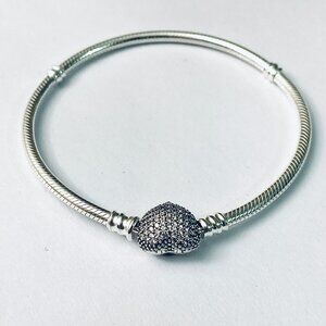 Authentic Pandora Bracelet PAVE HEART Sterling Silver 925 ale Snake Chain