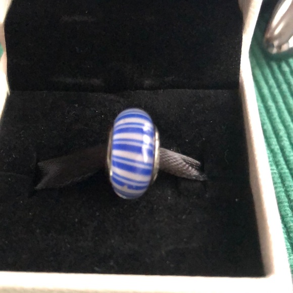 Blue and white striped glass Murano Charm Authentic Pandora Charm