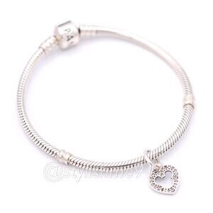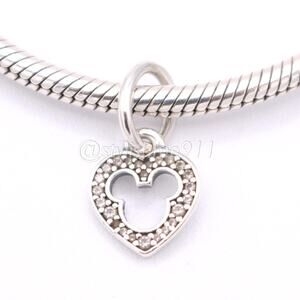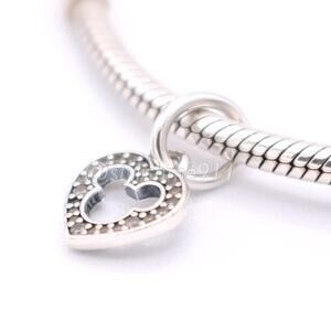 Authentic Pandora Retired Sterling Silver Mickey Silhouette Heart Disney Pendant, S925 ALE Stamp