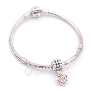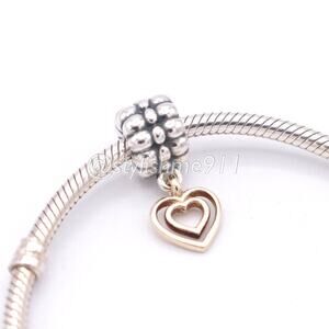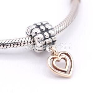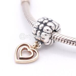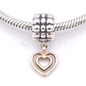 Authentic Pandora Retired Sterling Silver and 14K Gold Heart of Hearts Dangle Clip, S 925 ALE