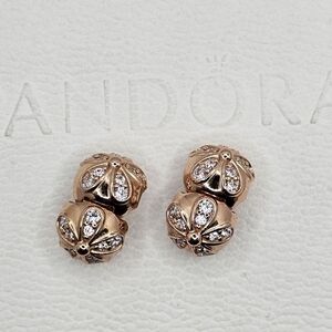 ⭐️ 2 RETIRED Authentic Pandora Rose Dazzling Daisies Clips, 14k Rose Gold Plated, Clear Cz