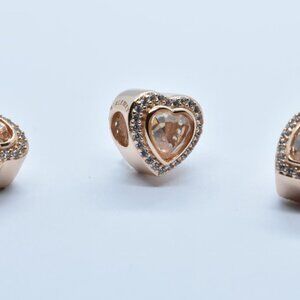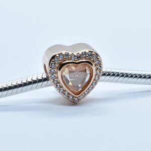 Authentic Pandora Rose Gold Heart Radiant Charm with CZ