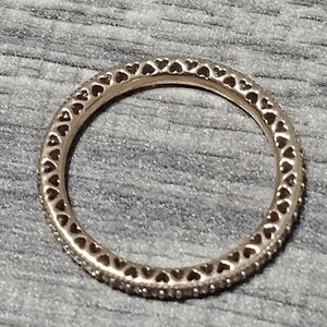 Express your heart's true desire with this Sparkle & Hearts Ring. Hand-finished in 14k rose gold plating, this elegant style beautifully combines dazzling cubic zirconia stones with delicate cut-out hearts. Showcase it on its own or mix and match with other Pandora stackable rings for a chic play on textures.