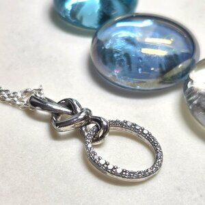 Authentic Pandora Sterling Silver Heart Knot Necklace Adjustable Length 24 In CZ