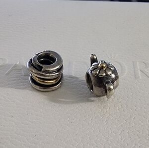 Authentic Pandora Teapot and Twisted Rope Charm 14k and sterling silver Retired