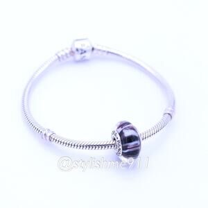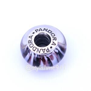 Authentic PANDORA Retired Sterling Silver Black and White Zebra Animal Print Murano Glass Bead - 790938