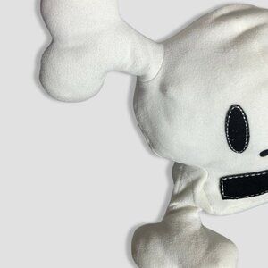 Add a bold statement to your collection with this large Paul Frank Skurvy plush skull pillow. Made from soft white fleece with embroidered black details, this licensed piece captures the iconic Skurvy character's playful charm in oversized, huggable form.