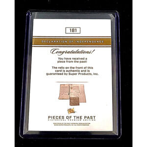 2023 Pieces of the Past Historical Premium Declaration of Independence Handwritten Relic 1/1