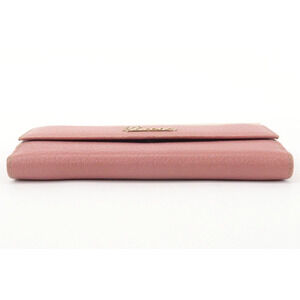 Authentic Pink GUCCI Leather Bi-fold Long Wallet with Gold Toned Hardware