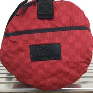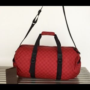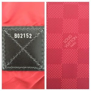 Travel in style with this Keepall 55 by Louis Vuitton launched to celebrate the 30th Anniversary of LV Cup in 2013. Crafted from the bright red damier canvas with black trim, it has top zip closure, strap handles, adjustable shoulder strap and two side pockets. Its roomy interior is lined with red nylon and has a zipper pocket. When not in use, this bag can be folded up and kept inside the inner pocket for easy storage. 53 CM(L) 30 CM(H) 30 CM(W) Shoulder Strap: 84 - 153 CM Handle Drop: 51 CM