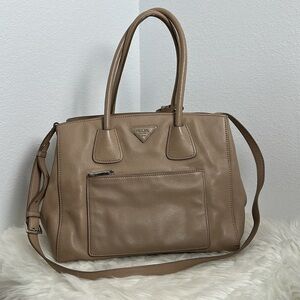 💯Authentic Prada Beige Leather Two-way Bag🍀