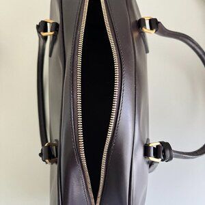 @belle_de_jour78 Hi! I think I would say it's brown with a hint of burgundy. Shoulder drop measures 8.5 in.