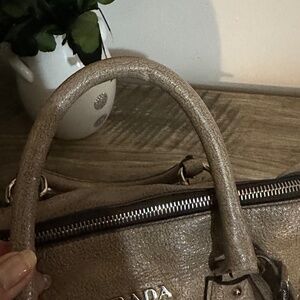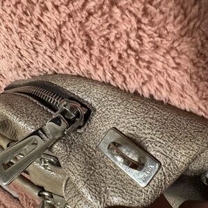 Authentic Prada Brown Cervo Lux Nudo Sparkle Leather Boston Bag.