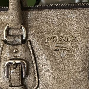Prada Brown Cervo Lux Nudo Sparkle Leather Boston Bag.