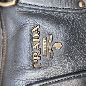 Prada Daino Vitello Metallic Hobo Bag in good used condition. It made a great overnight travel bag. It has 2 top handles, 1 long adjustable removable strap for shoulder or crossbody use & luggage tag.
