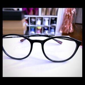 This i a beautiful Prada frame. Bought this with an intention to change as a prescription glasses but didn’t get a chance to do it so i used it as fashion style. (Clear glasses). The left lenses has scratches due to neglect but the frame itself is in excellent condition. No scratches. No scuffs no damage. . Misplaced the case. This frame can be replace as prescription glasses or a sunglasses.