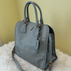 💯Authentic Prada Light Blue Safiano Leather Tote Bag🍀