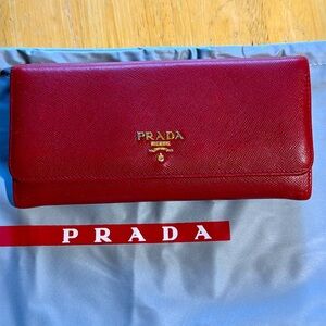 ๐ฏ Authentic Prada Long Wallet Brand New in Red Color with ID & 2 Card Slot