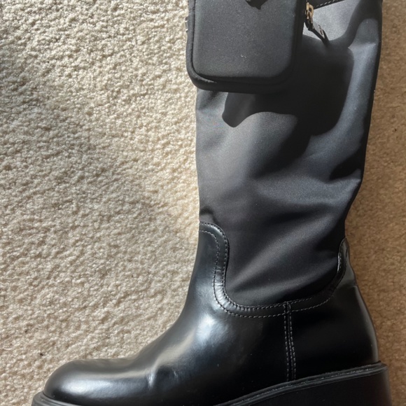 Authentic Prada Monolith Nylon Zip-Pocket Platform Riding Boots