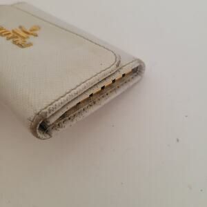 Authentic Prada Multicles Key Holder Hooks Case White Small Wallet Leather Logo