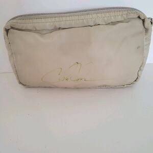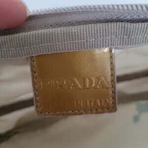 Authentic Prada Nylon Cosmetics Bag Beige Makeup Pouch Travel Small Zip Around