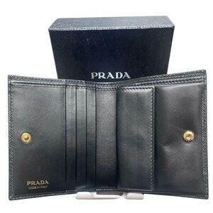 Authentic Prada Saffiano Monochrome Compact Wallet in Black