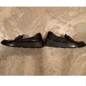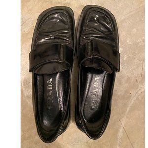 Gently Used Authentic Prada Square Toe Velcro Platform Black Loafer (Size 35/US5).