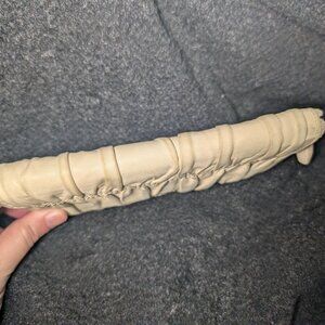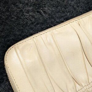 This Prada wallet has a lovely tufted leather design. The zipper and interior are in excellent condition. The outside shows discoloration on the edges of the tufting of the leather as pictured. It may come off with a good leather cleaner. This wallet comes with the original Prada authenticity card.