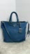 Chic Prada tote in rich teal leather. Features sturdy handles and sleek design. Ideal for daily use.