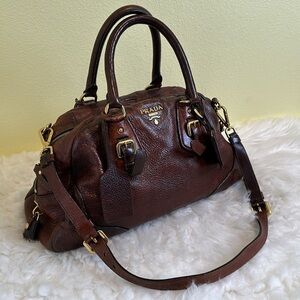 💯 Authentic Prada Two-way Brown Leather Handbag🍀