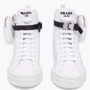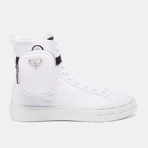 Authentic Prada Wheel Zipped-Pouch High Top Re-Nylon Trainers in White