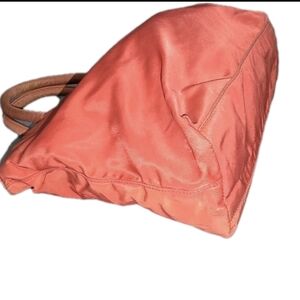 Elevate your style with this chic authentic Prada tote bag. Crafted in a vibrant reddish orange, it's perfect for any occasion. Experience luxury and functionality with Prada.