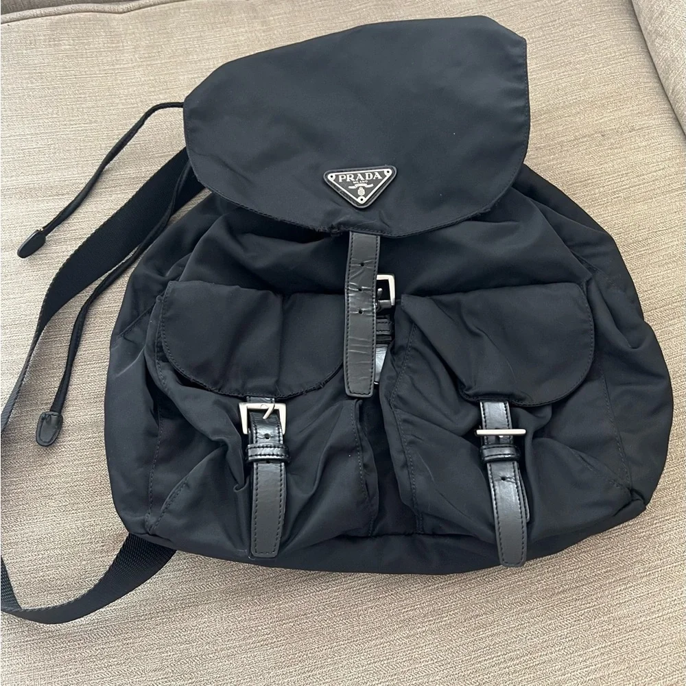 Authentic Prada are-Nylon Drawstring Backpack